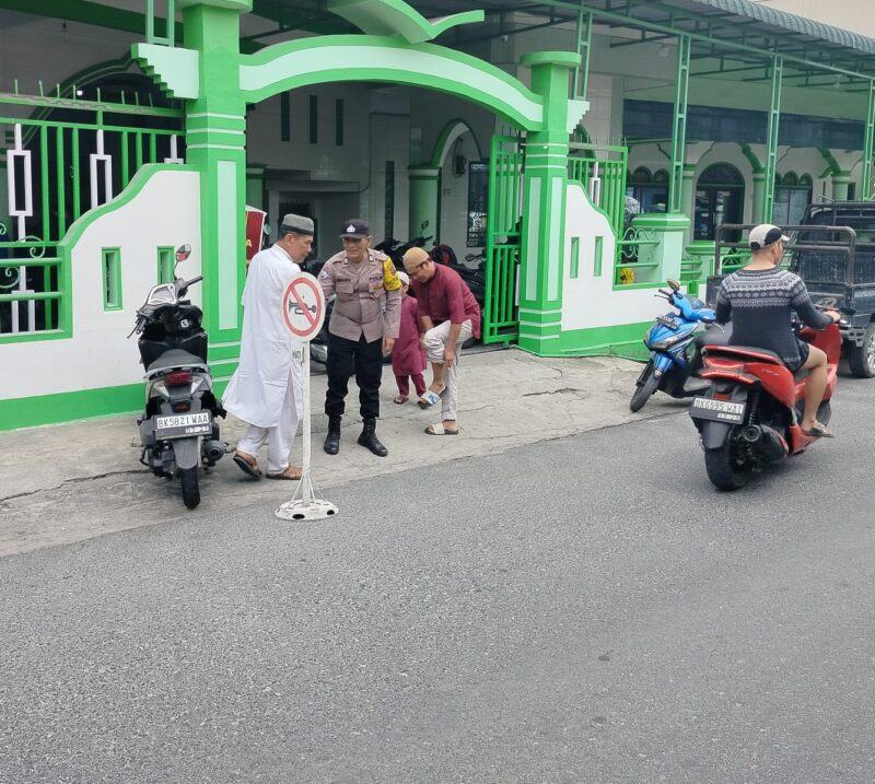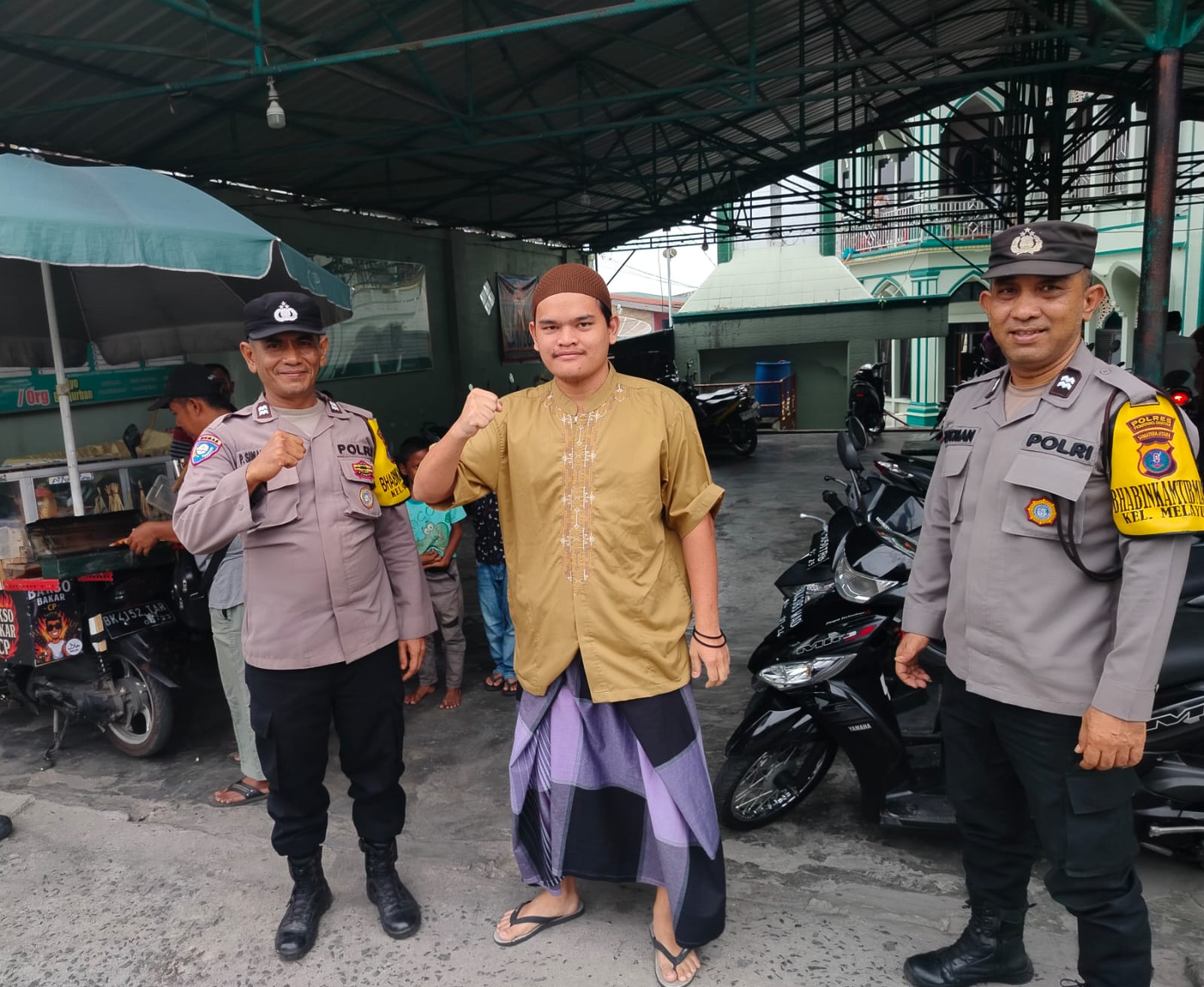 Liputanmetrosumut.com || Pematang Siantar – Polsek Siantar Utara Polres Pematangsiantar melalui Piket Bhabinkamtibmas AIPTU Hotman Simangunsong SH, Aiptu P. Simanjuntak dan Aipda Yudi P. Wibawa melaksanakan patroli di Mesjid dalam rangka pengamanan Ibadah Sholat Jumat, pada hari Jumat 5 September 2025 siang pukul : 12. 20 Wib.