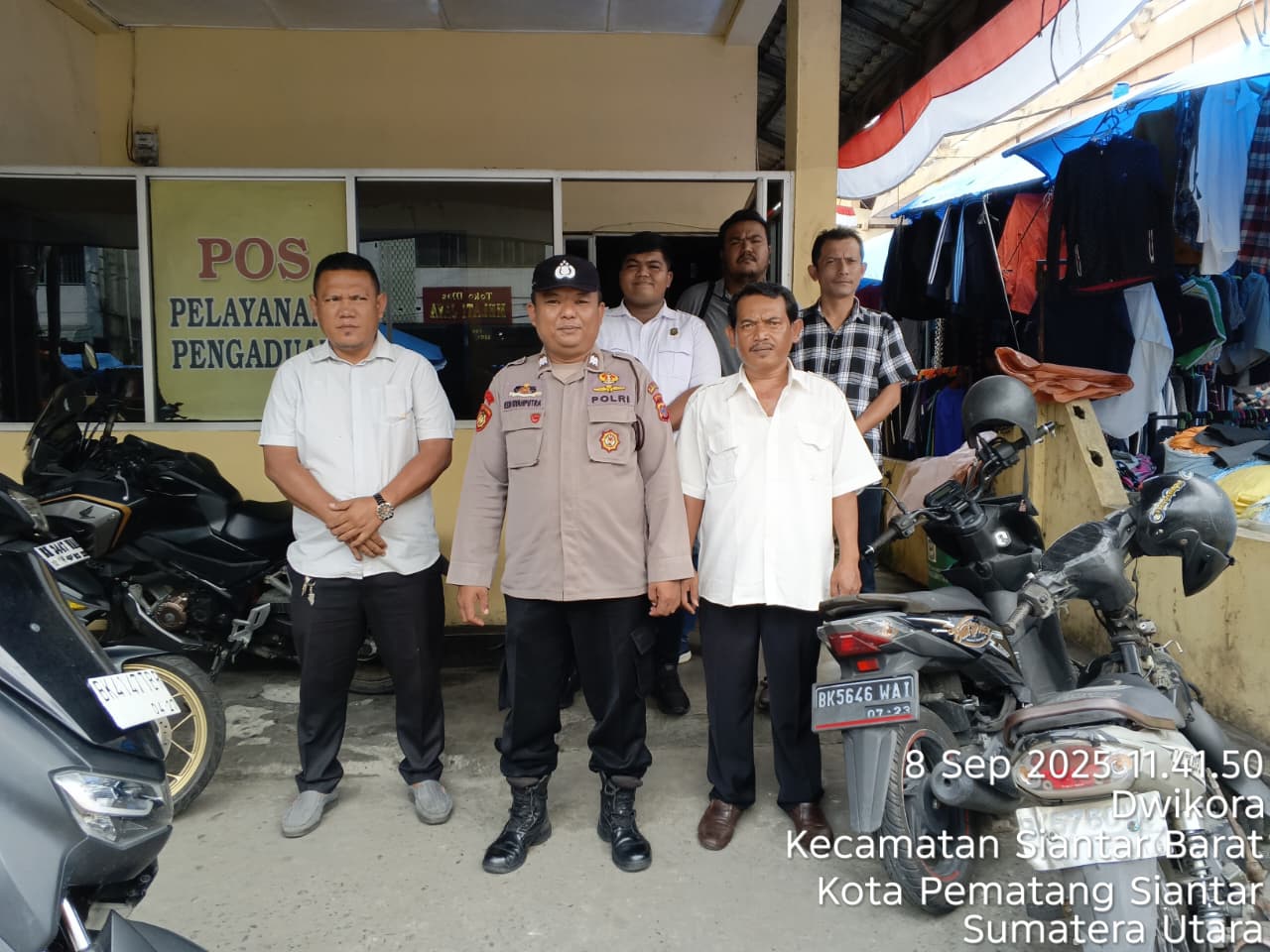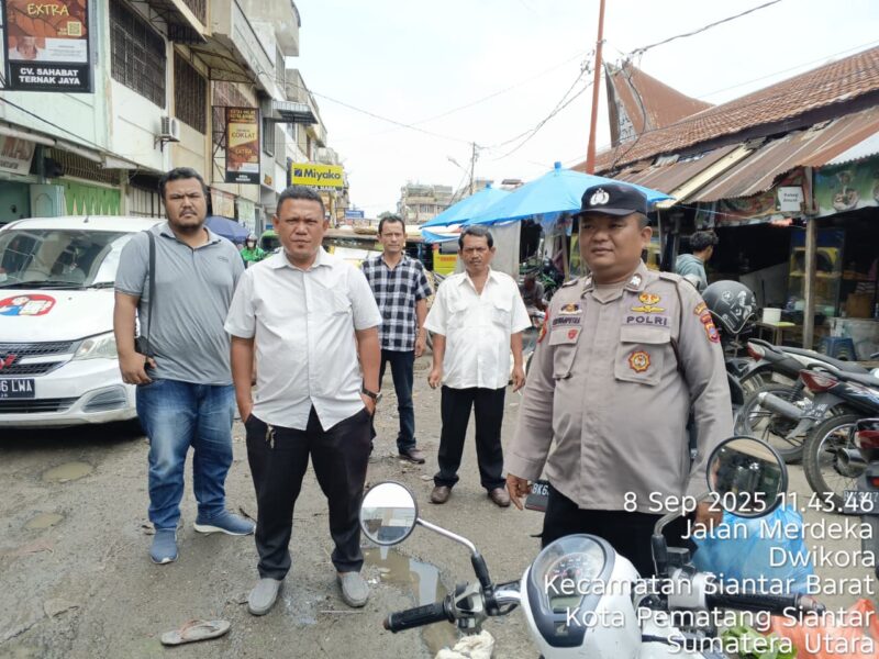 Liputanmetrosumut.com   ||  Pematang Siantar –    Polsek Siantar Barat Polres   siantar melalui Kasub Sekor Pasar Horas AIPTU Edi Syahputra SH melaksanakan patroli jalan kaki siang hari diseputaran Pasar Horas Kelurahan Dwikora Kecamatan Siantar Barat, Kota Pematangsiantar, pada Senin 8 September 2025 pukul 12:15 Wib