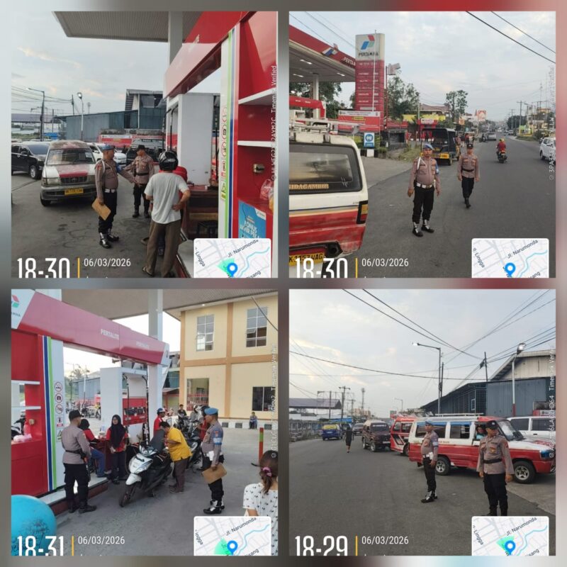 Liputanmetrosumut.com   ||  Pematang Siantar –         Polres Pematangsiantar melalui Kapolesk Siantar Selatan IPTU Priston Simbolon bersama PS. Kanit Provos AIPDA Fai J. Silalahi dan personil jaga melaksanakan monitoring pengisian atau penyaluran Bahan Bakar Minyak (BBM) di SPBU No. : 14.211.201 Jalan Melanthon Siregar Kelurahan Karo Kecamatan Siantar Utara Kota Pematangsiantar, Pada Jumat 6 Maret 2026 malam sekira pukul 18.30 Wib.