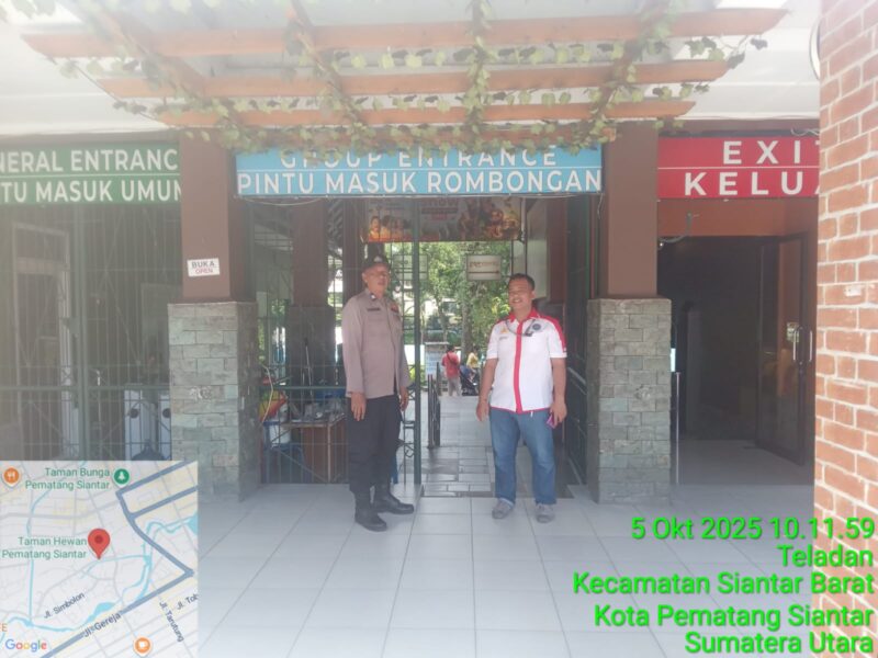 Liputanmetrosumut.com   ||  Pematang Siantar –             Polsek Siantar Barat Polres Pematangsiantar melalui Piket Bhabinkamtibmas AIPTU RP. Damanik dan BRIPKA Agus R menggelar kegiatan patroli rutin di tempat wisata di wilayah hukum Polsek Siantar Barat, pada Minggu 5 Oktober 2025 pagi pukul : 10.00 Wib.