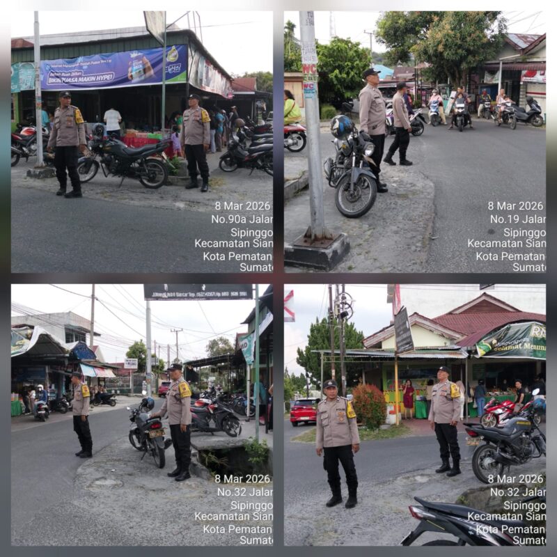 Liputanmetrosumut.com || Pematang Siantar – Polsek Siantar Martoba Polres Pematangsiantar melalui Bhabinkamtibmas Aiptu Deddy Syam dan Aiptu Rayendra P. Damanik melaksanakan patroli Tempat Penjualan Takjil yang ada di wilayah hukum Polsek Siantar Barat, pada Minggu 8 Maret 2026 sore sekira pukul 16 .25. Wib.