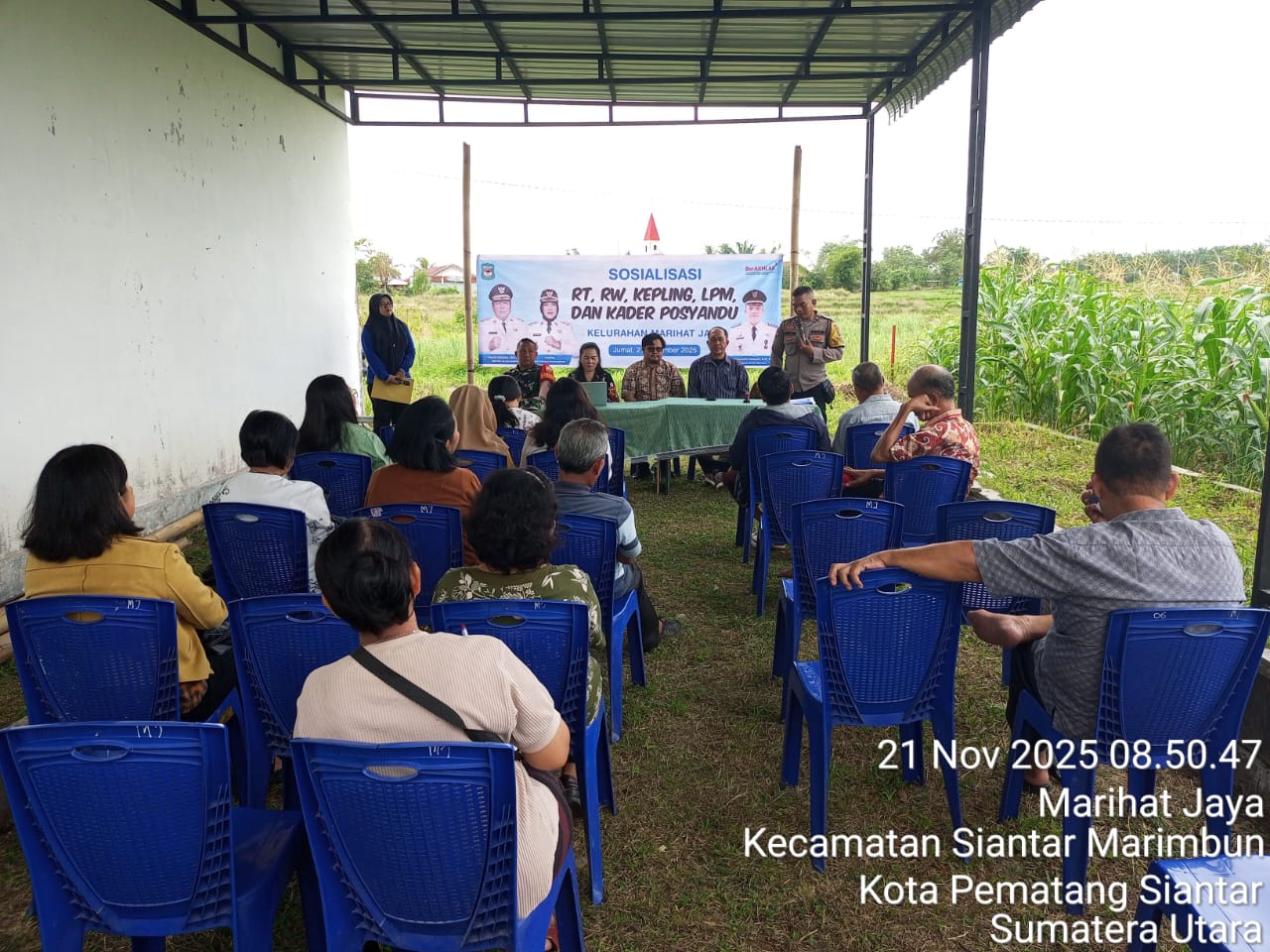 Liputanmetrosumut.com || Pematang Siantar – Polsek Sianțar Marihat Polres Pematangsiantar melalui Bhabinkamtibmas Kelurahan Marihat Jaya Aipda Erick F Marbun hadir menjadi narasumber sosialisasi yang diselenggarakan di Kantor Lurah Marihat Jaya, Kecamatan Siantar Marimbun Kota Pematangsiantar, pada Jumat 21 November 2025 pagi pukul : 08.00 Wib.