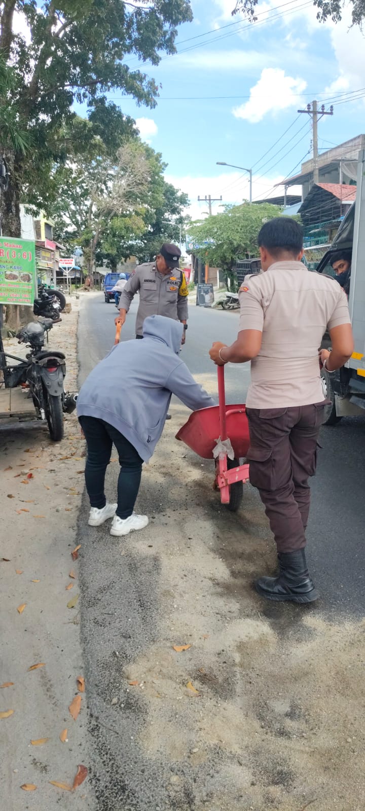 Lalu Bhabinkamtibmas mengajak pihak Kelurahan Nagapita dan pihak SPBU No. 13 .211. 118 menabur pasir agar kondisi Jalan atau Aspal tidak licin lagi kemudian juga menghimbau Pengendara tetap berhati-hati dan memasang Plang di sekitaran tumpahan solar.