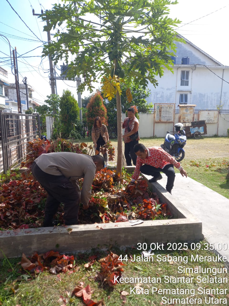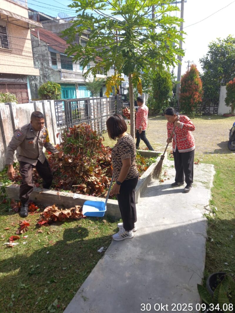 Liputanmetrosumut.com || Pematang Siantar – Polseķ Sianțar Selatan Polres Pematangsianțar melalui Bhabinkamtibmas Kelurahan Simalungun AIPTU Untung JF. Nainggolan mengikuti kegiatan gotong gotong royong bersama diseputaran Kantor Kelurahan Simalungun, jln. Sabang Merauke, Kecamatan Sianțar Selatan Kota Pematangsiantar, pada hari Kamis 30 Oktober 2025 pagi sekira pukul 09:30 Wib.