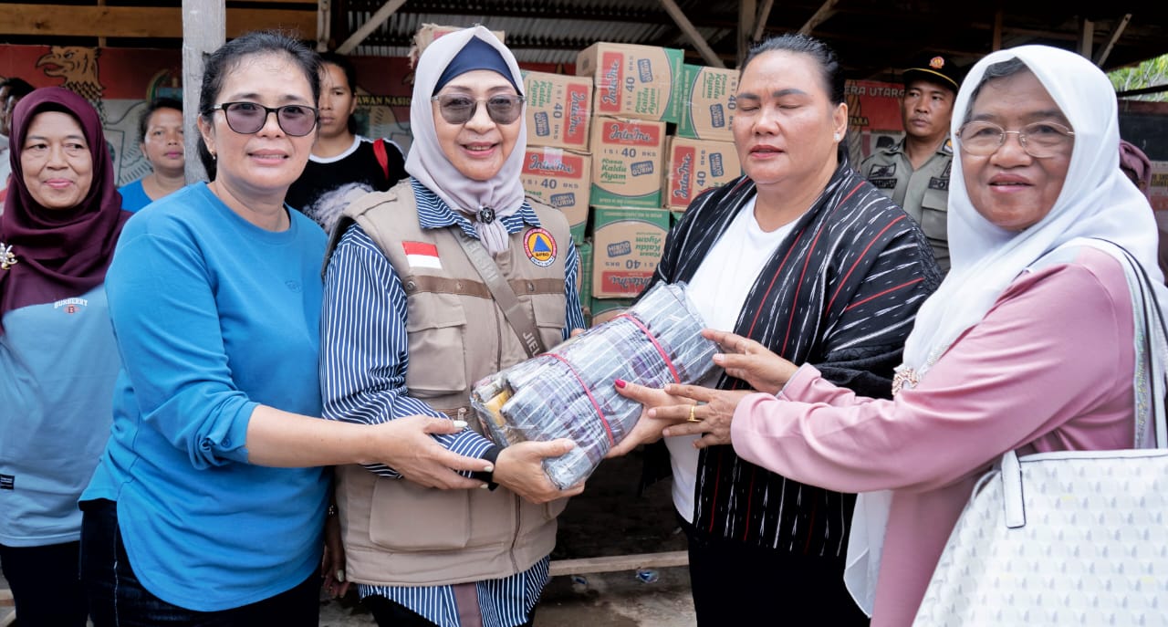 Bantuan tersebut diserahkan langsung oleh Ketua TP PKK Simalungun, Ny. Hj Darmawati Anton Achmad Saragih bersama Ketua Dharma Wanita Persatuan Simalungun, Ny Yulince Mixnon Andreas Simamora kepada Ketua TP PKK Tapteng, Ny Rismawati Masinton Pasaribu di Posko Pengungsi SMA Negeri 1 Tukka.