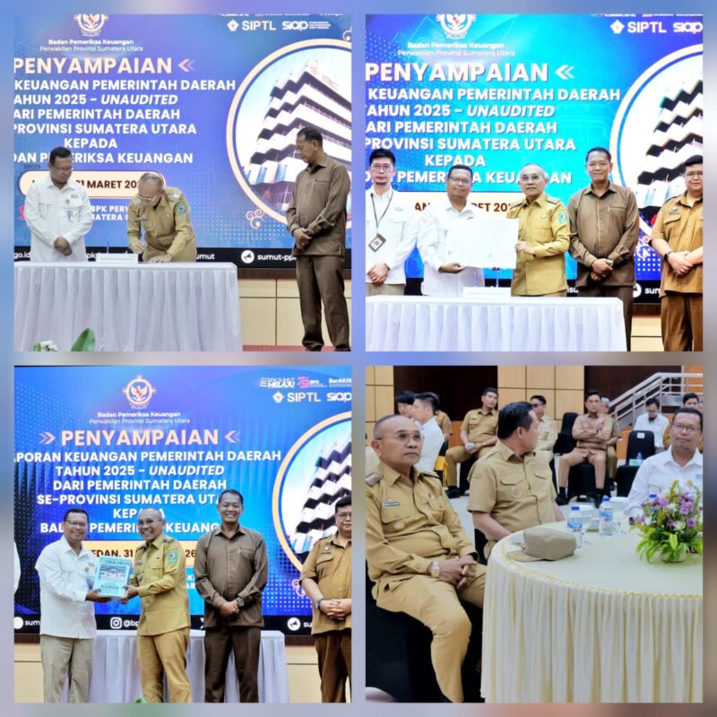 Acara penyerahan berlangsung di Auditorium BPK Perwakilan Provinsi Sumatera Utara, Medan, Selasa (31/03/2026), yang di hadiri langsung Kepala BPK Perwakilan Prov. Sumut, Paula Henry Simatupang. Turut mendampingi Bupati antara lain Plt. Asisten II Rinton Damanik dan Kepala BPKPD Simson Sauttua Pardomuan Tambunan.