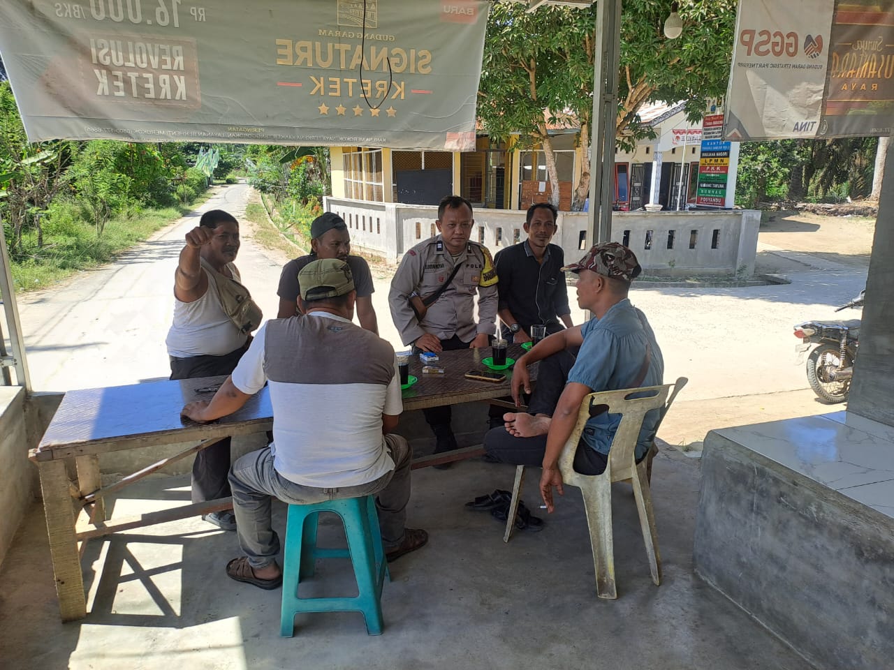 Dalam kegiatan yang berlangsung penuh keakraban tersebut, Aiptu J.S. Butar Butar menyambangi warung milik Bapak Parno, yang terletak tepat di depan kantor Pangulu Banjar Hulu. Di sana, ia berinteraksi langsung dengan warga yang sedang berkumpul dan berbincang santai.