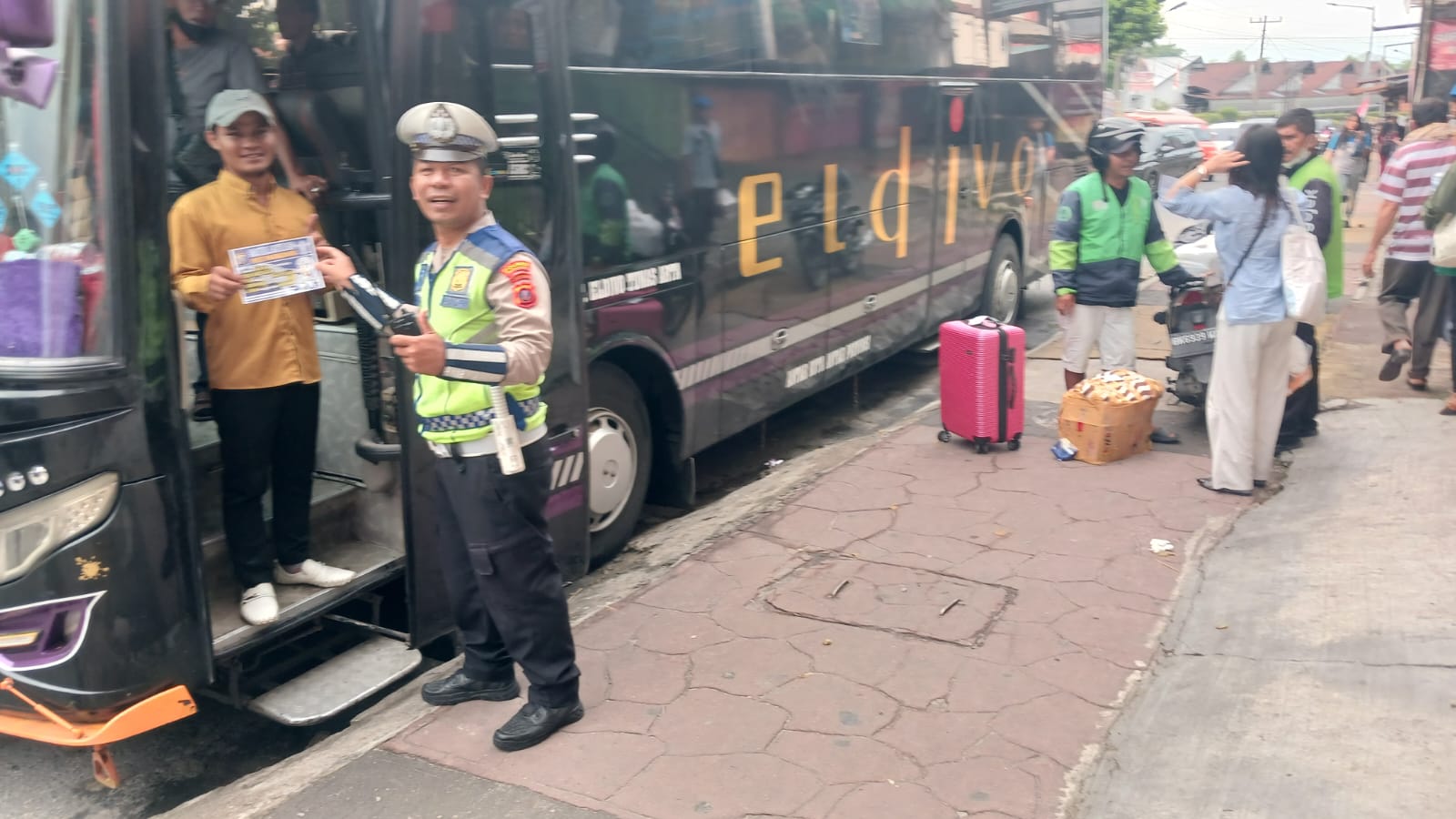 Liputanmetrosumut.com || Pematang Siantar – Dalam rangka Pendidikan Masyarakat Lalu Lintas, Penerapan Keliling dan Penyuluhan (Dikmas Lantas Penling Penluh), Satuan Lalu lintas (Sat Lantas) Polres Pematangsiantar melalui Kanit Kamsel IPDA Serly Tarigan bersama personilnya membagikan brosur tertib berlalu lintas di Loket Bus Eldivo, Jl. Pattimura Kelurahan Pahlawan, Kecamatan Siantar Timur, Kota Pematangsiantar, pada Senin 16 September 2025 pagi pukul : 10.00 Wib.