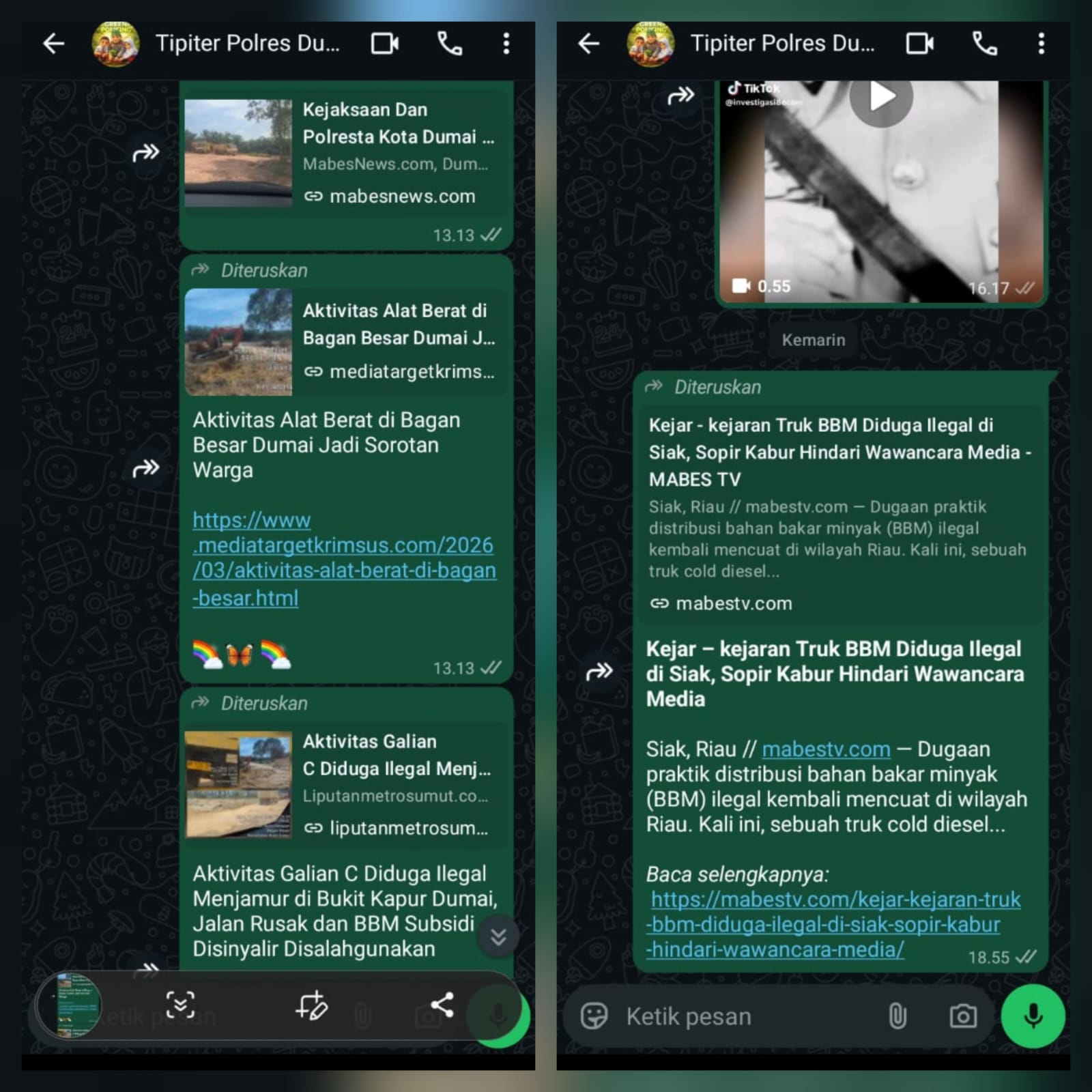 Tim media menyebutkan bahwa berbagai informasi dan temuan lapangan tersebut telah beberapa kali disampaikan melalui upaya konfirmasi kepada pihak terkait, termasuk kepada satuan Tipidter Polres Dumai. Namun respons yang diharapkan hingga kini belum diperoleh.