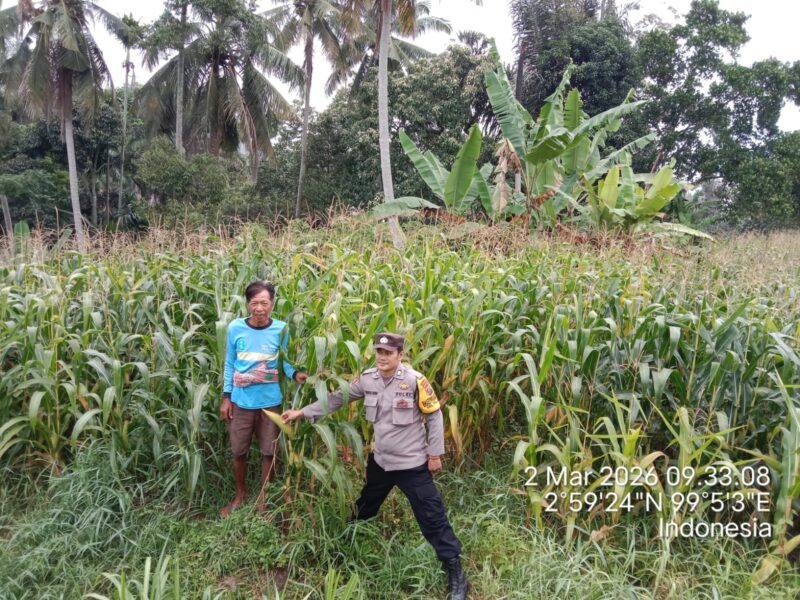 Liputanmetrosumut.com || Pematang Siantar – Dalam rangka mendukung Program Ketahanan Pangan (Ketapang), Polsek Siantar Barat Polres Pematangsiantar melalui Bhabinkamtibmas Kelurahan Teladan BRIPKA Surya Darma melakukan pengecekana tanaman jagung warga binaan Bapak Nasib di Jalan Sumber Jaya Kelurahan Sumber Jaya Kecamatan Siantar martoba Kota Pematangsiantar, pada Senin 2 Maret 2026 pagi sekira pukul : 09.30 Wib.