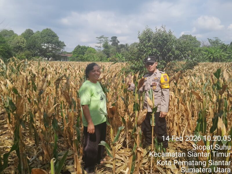 Liputanmetrosumut.com || Pematang Siantar – Polsek Siantar Timur Polres Pematangsiantar melalui Bhabinkamtibmas Kelurahan Siopat Suhu Aipda Vicktorson Saragih S.T sambangi ladang jagung warga binaan di Jalan Sangnawaluh Kompleks Asrama Putri Kampus Universitas HKBP Nommensen, Kelurahan Siopat Suhu Kecamatan Siantar Timru Kota Pematangsiantar, pada Sabtu 14 Februari 2026 pagi sekira pukul 10.20 WIB.