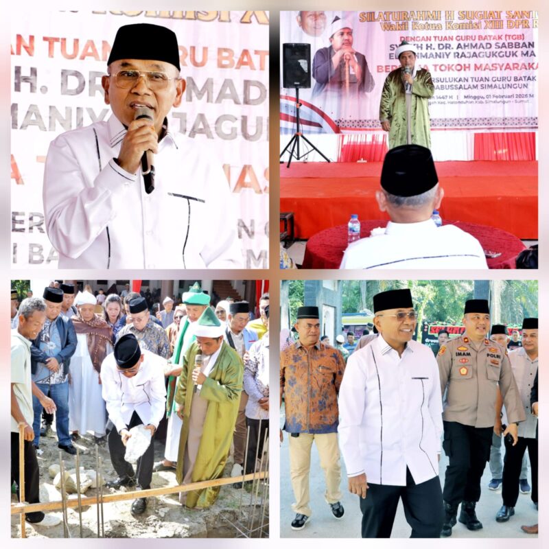 Liputanmetrosumut.com   ||  Simalungun – Sumut –         Suasana Pondok Parsulukan Tuan Guru Batak Serambi Babussalam di Nagori Jawa Tongah, Kecamatan Hatonduhan, Kabupaten Simalungun, terasa penuh kehangatan dan kebersamaan. Acara groundbreaking Rumah Tahfiz Qur’an H Sugiat Santoso diadakan dengan meriah, dihadiri langsung oleh Bupati Simalungun Dr H Anton Achmad Saragih bersama Wakil Bupati Benny Gusman Sinaga, Minggu (1/2/2026)