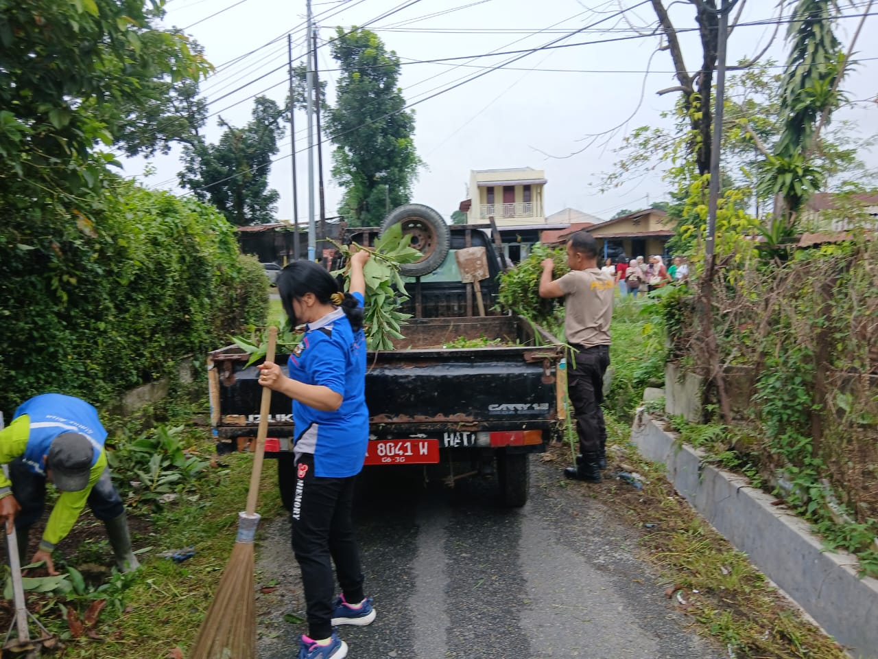 Liputanmetrosumut.com || Pematang Siantar – Polsek Siantar Marihat Polres Pematangsiantar melalui piket Bhabinkamtibmas Aiptu F Munteh, Bripka Johanes Siregar dan Bripka Yonedi mengikuti kegiatan gotong royong di Jalan Farel Pasaribu Atas, Kelurahan Suka Maju, Kecamatan Siantar Marihat Kota Pematangsiantar, pada Jumat 10 Oktober 2025 pagi pukul : 08.00 Wib.