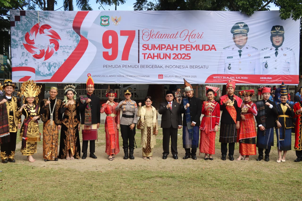 Liputanmetrosumut.com || Pematang Siantar – Bertempat di Lapangan Haji Adam Malik, Kapolres Pematangsiantar Hadiri Upacara Peringatan Hari Sumpah Pemuda ke 97 Kota Pematangsiantar pada hari Selasa 28 Oktober 2025 pagi pukul 08.00 Wib.