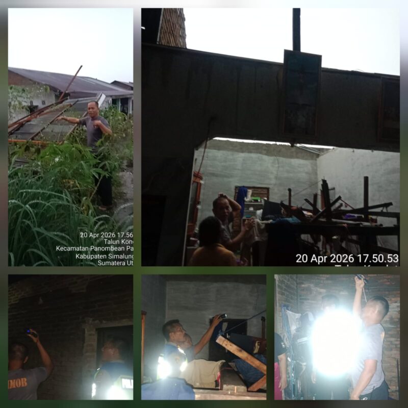 Liputanmetrosumut.com    ||  Pematang Siantar –       Kapolsek Siantar Martoba AKP Martua Manik SH. MH respon cepat pimpin langsung pengecekan dan monitoring terjadinya bencana alam angin kencang atau puting beliung di Jalan Sibatu Batu Ujung Kelurahan Gurilla Kecamatan Siantar Sitalasari Kota Pematangsiantar, pada Senin 20 April 2026 sore sekira pukul 17.00 Wib.