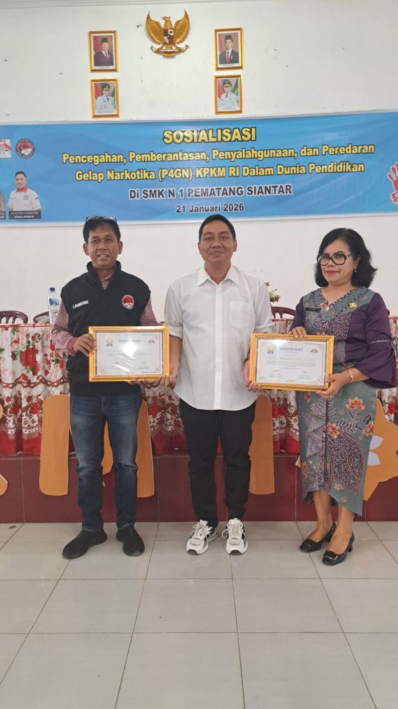 Liputanmetrosumut.com  ||  Pematang Siantar –       Kepala Satuan (Kasat) Reserse Narkoba Polres Pematangsiantar AKP Irwanta Sembiring SH. MH didampingi KBO IPTU Apri Damanik SH. MH melaksanakan Sosialisasi atau Penyuluhan Tentang Bahaya Narkoba di SMK Negeri 1 yang terletak di Jalan Bali No. 05, Kelurahan Bane Kecamatan Siantar Utara Kota Pematangsiantar, pada hari Rabu 21 Januari 2026 pagi sekira pukul : 09.00 Wib.
