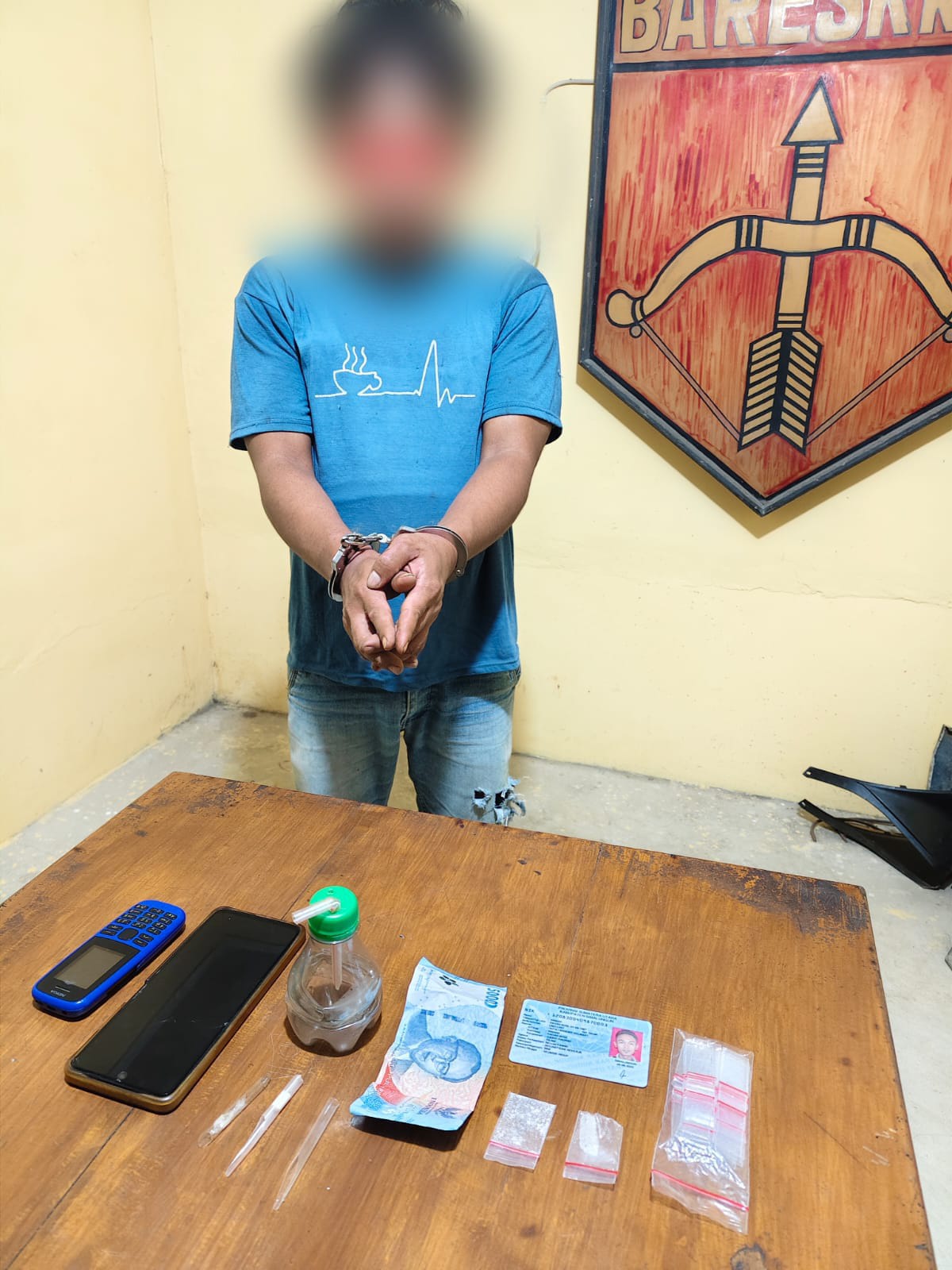 Barang bukti yang dibuang pelaku berhasil diamankan. “Kami amankan barang yang dibuang pelaku: 1 buah bong terbuat dari botol plastik dan 1 buah kaca pirex yang diduga berisi sabu. Ini adalah barang bukti penting,” ungkap Kanit Reskrim.