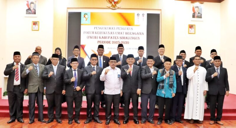 Liputanmetrosumut.com || Simalungun – Sumut – Bupati Simalungun Dr H Anton Ahmad Saragih secara resmi mengukuhkan pengurus Forum Kerukunan Umat Beragama (FKUB) Kabupaten Simalungun periode 2025 – 2030, berlangsung di Balei Harungguan Djabanten Damanik Kantor Bupati Simalungun, Pematang Raya , Sumatera Utara, Senin (22/12/2025).