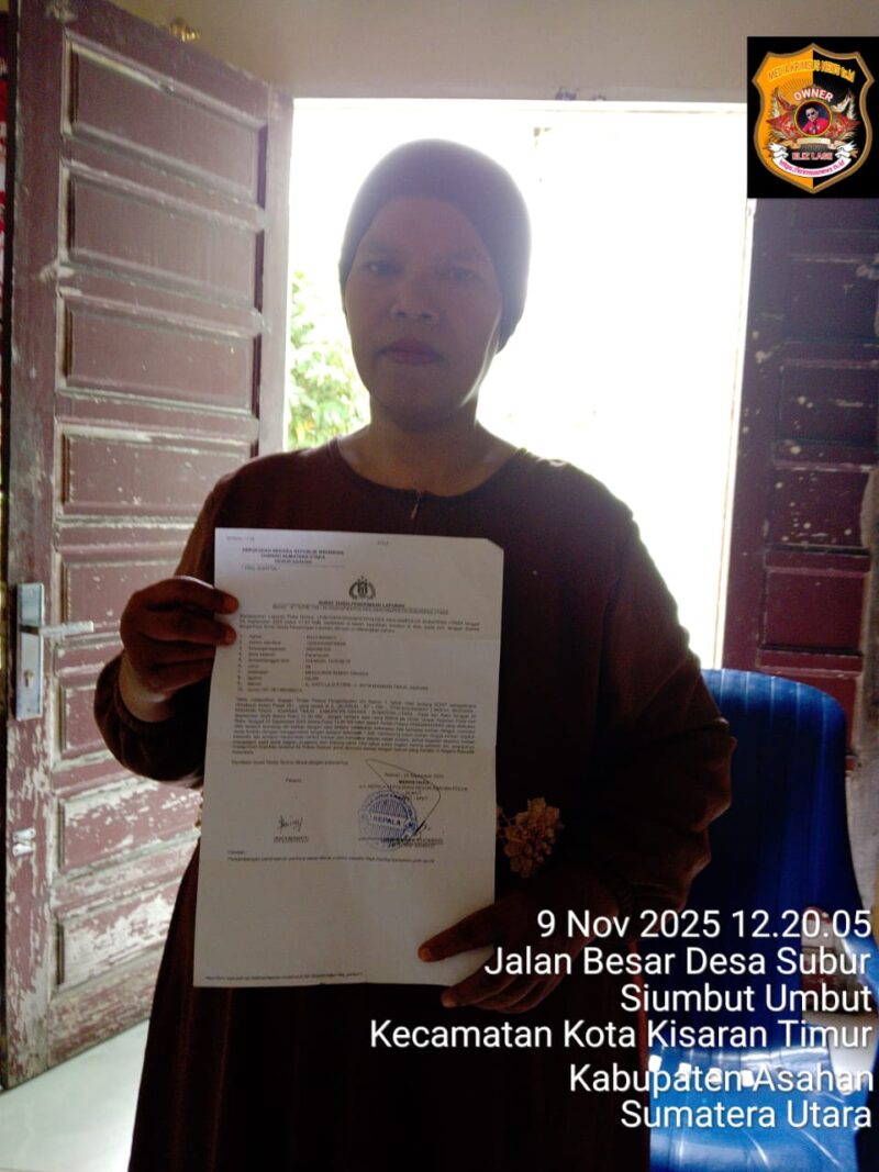 Saat itu juga ibu Rachmati datang ke polres Asahan ke unit SPKT untuk buat laporan, dan setelah itu diterima laporan ibu Rachmati di SPKT Polres Asahan.