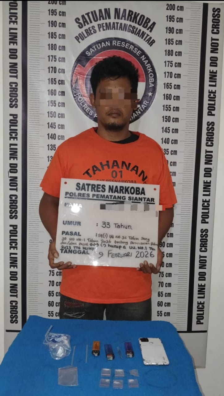 Liputanmetrosumut.com || Pematang Siantar – Satuan Reserse Narkoba Polres Pematangsiantar berhasil mengungkap kepemilikan 6 paket narkotika jenis sabu di Jalan Patuan Anggi Gang Ciput Kelurahan Pardomuan Kecamatan Siantar Timur Kota Pematangsiantar, pada Senin 9 Pebruari 2026 sore sekira pukul 17.00 WIB.