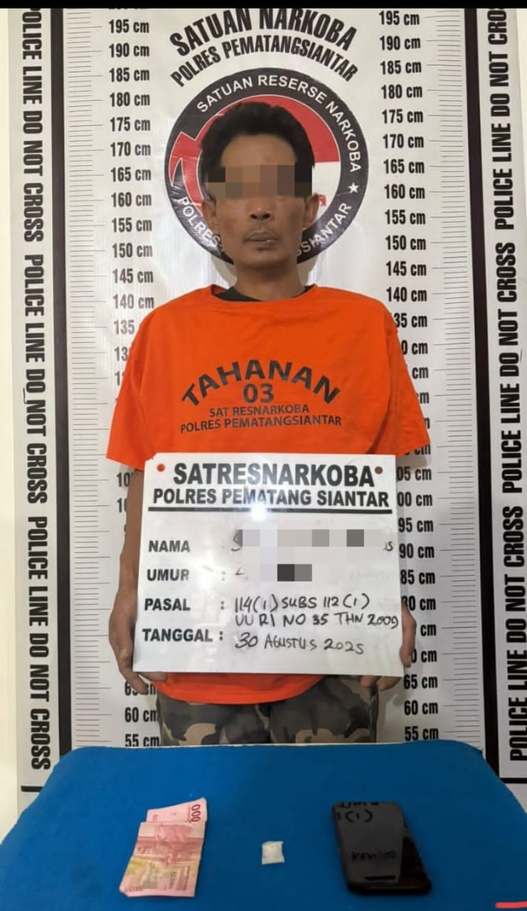 Liputanmetrosumut.com || Pematang Siantar – Satuan Reserse Narkoba Polres Pematangsiantar menangkap S alias K (41) memiliki narkotika jenis sabu berat bruto 1,06 gram dirumahnya yang terletak di Jalan Setia Negara Sitio tio Kelurahan Setia Negara Kecamatan Siantar Sitalasari Kota Pematangsiantar, pada Sabtu 30 agustus 2025 malam sekira pukul 21.25 WIB.
