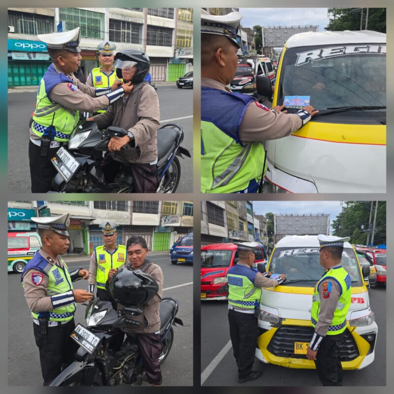 Liputanmetrosumut.com || Pematang Siantar – Dalam rangka Operasi Keselamatan Toba Tahun 2026, Satuan Lalu lintas (Sat Lantas) Polres Pematangsiantar melaksanakan edukasi dan penempelen stiker di Angkutan kota (Angkot) yang ada di Jalan Sutomo Simpang Jalan Pattimura, Kota Pematangsiantar, pada Kamis 12 februari 2026 pagi sekira pukul : 08.00 Wib.