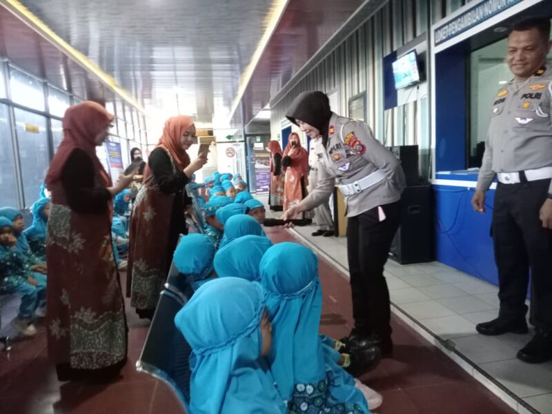 Kedatangan Anak anak TK YPHI berjumlah 71 orang didampingi Kepala sekolah dan 8 orang guru tersebut diterima langsung Kepala Satuan (Kasat) Lantas IPTU Friska Susana SH bersama Kanit Kamsel IPDA Serly Tarigan, Kanit Turjawali IPDA H. Tambunan dan personil.