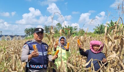 Bhabinkamtibmas Polsek Siantar Marihat Bersama Petani Binaan Panen Jagung