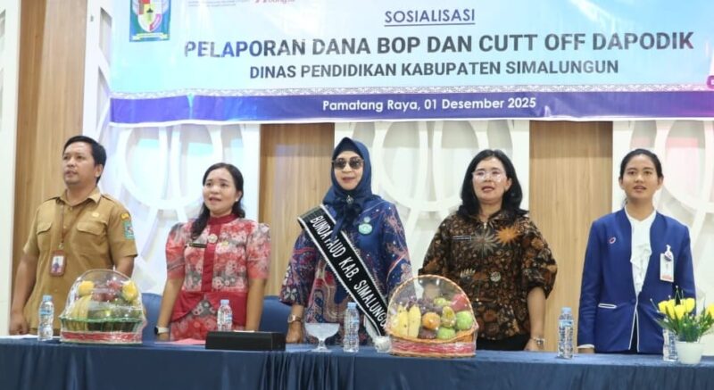 Liputanmetrosumut.com || Simalungun – Sumut – Pemerintah Kabupaten (Pemkab) Simalungun melalui Dinas Pendidikan menggelar kegiatan sosialisasi pelaporan dana Bantuan Operasional Pendidikan (BOSP) Cut Off Dapodik di Aula Tjohan Garingging, Simalungun City Hotel, Pamatang Raya, Sumatera Utara, Senin (1/12/2025).