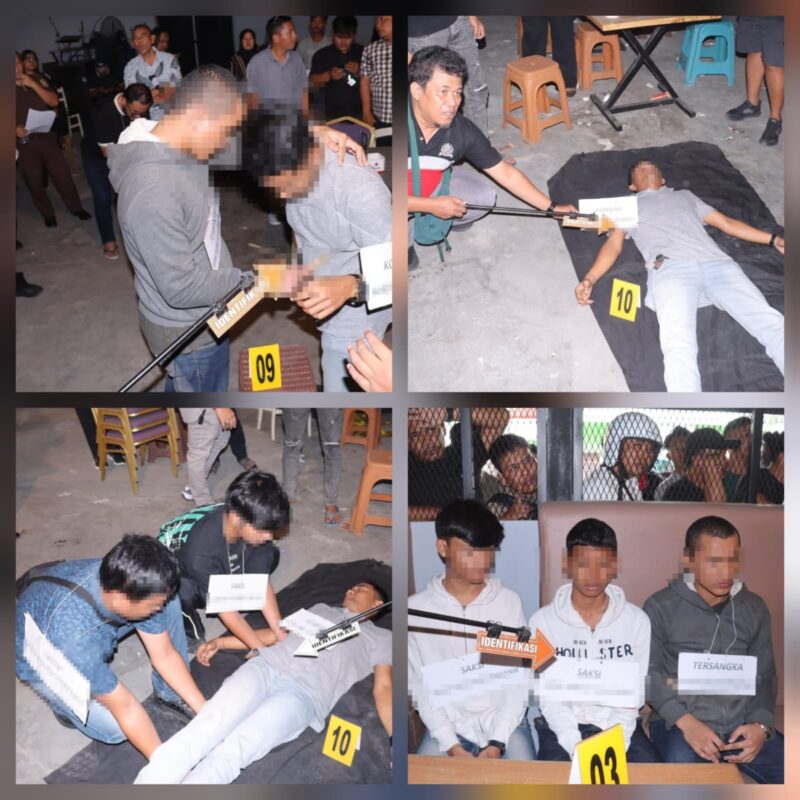 Dalam rekontruksi tersangka VS dan RGN dihadirkan langsung menjelaskan 10 adegan yang menggambar kejadian mulai dari awal hingga terjadinya tindak kekerasan yang mengakibatkan korban meninggal dunia. Adapun korban dalam kasus ini inisial AP.