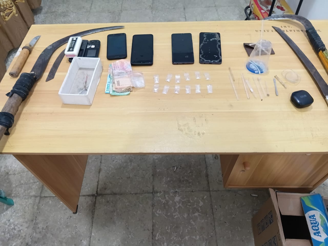 Dari tangan para terduga, petugas berhasil mengamankan sejumlah barang bukti berupa satu paket besar narkotika jenis sabu-sabu dengan berat bruto 6,79 gram, lima paket kecil sabu-sabu dengan berat bruto 0,81 gram, satu butir pil ekstasi warna hijau, beberapa unit telepon genggam, uang tunai, alat hisap (bong), plastik klip berbagai ukuran, kaca pirek, timbangan digital, serta perlengkapan lain yang diduga digunakan dalam aktivitas peredaran narkoba. Total berat bruto sabu-sabu yang diamankan dari lokasi pertama mencapai 7,67 gram.