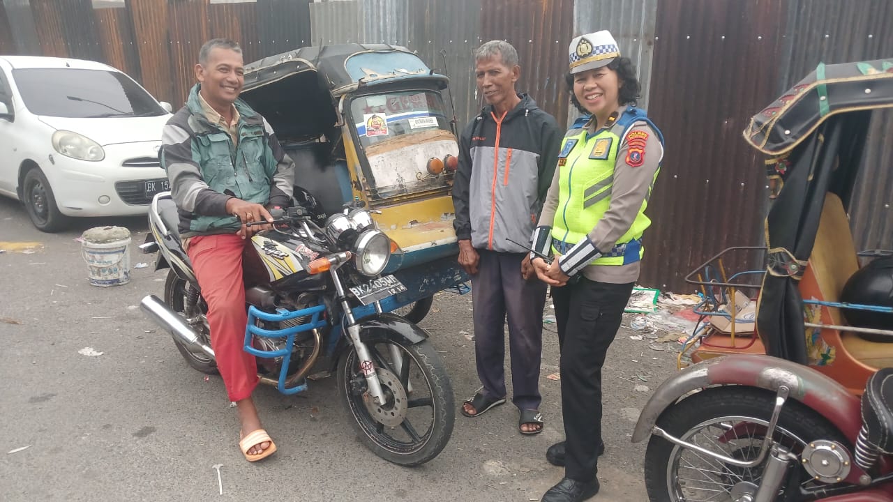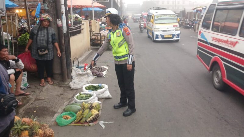 Kasat Lantas IPTU Friska Susana SH dalam laporannya mengatakan kegiatan tersebut rangkaian Program Polisi Lalulintas (Polantas) Menyapa. Edukasi diberikan kepada masyarakat pedagang menggunakan bagu jalan.