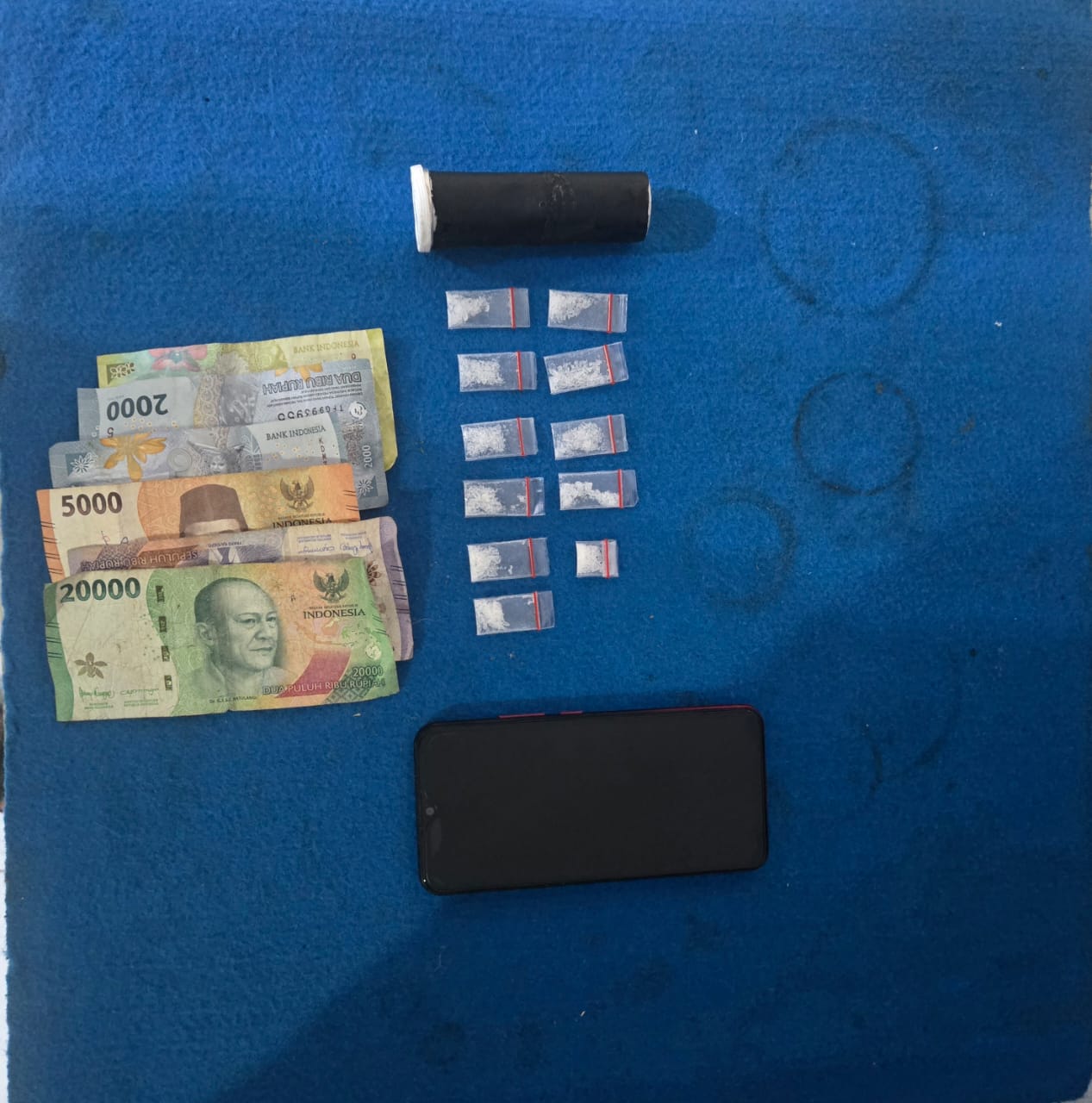 Setelah dilakukan penyelidikan di TKP, pada hari Jumat malam 16 Januari 2026 sekira pukul 19.00 WIB Tim Opsnal Sat Resnarkoba dipimpin Kanit 2 IPDA Indrawan S.Sos menangkap DS sedang berdiri dipinggir jalan, kemudian ditemukan barang bukti berupa 1 unit HP merk vivo warna merah dari kantong depan sebelah kirinya, uang sebesar Rp 40.000 dari tangan sebelah kirinya.