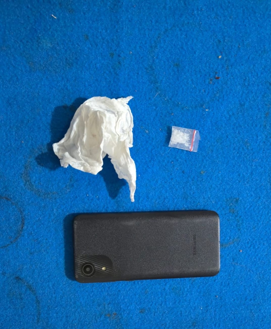 Kemudian ditemukan barang bukti balutan tisu warna putih didalamnya 1 paket plastik klip berisikan diduga Narkotika Jenis sabu berat bruto 0,60 gram diatas jok sepedamotor dikendarai tersangka S, 1 unit Handphone merek Samsung warna Hitam milik tersangka S yang sempat terjatuh di aspal.
