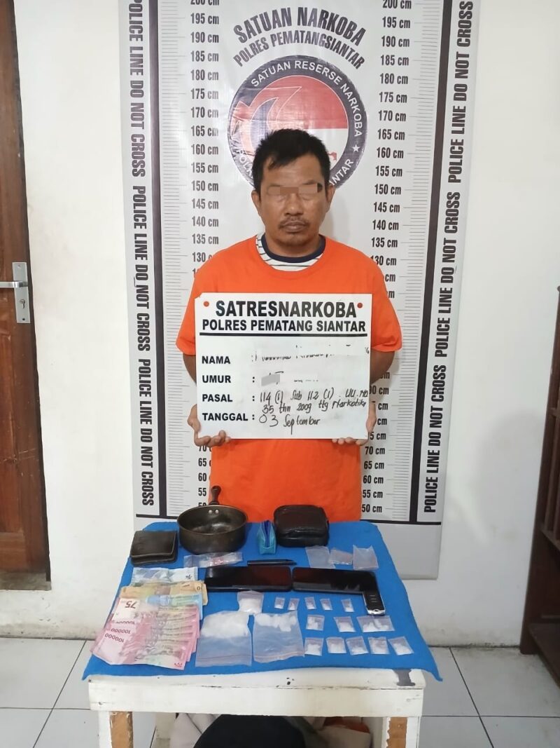 Liputanmetrosumut.com || Pematang Siantar – Satuan Reserse Narkoba Polres Pematangsiantar dipimpin Kanit Idik 2 IPDA Indrawan S.Sos berhasil Meringkus dan menangkap MKAT (43) diduga pengedar narkotika jenis sabu dirumahnya yang terletak di jalan Siak Gang Alpokat, Kelurahan Martoba Kota Pematangsiantar, pada Rabu 3 September 2025 malam sekira pukul 23.45 WIB.