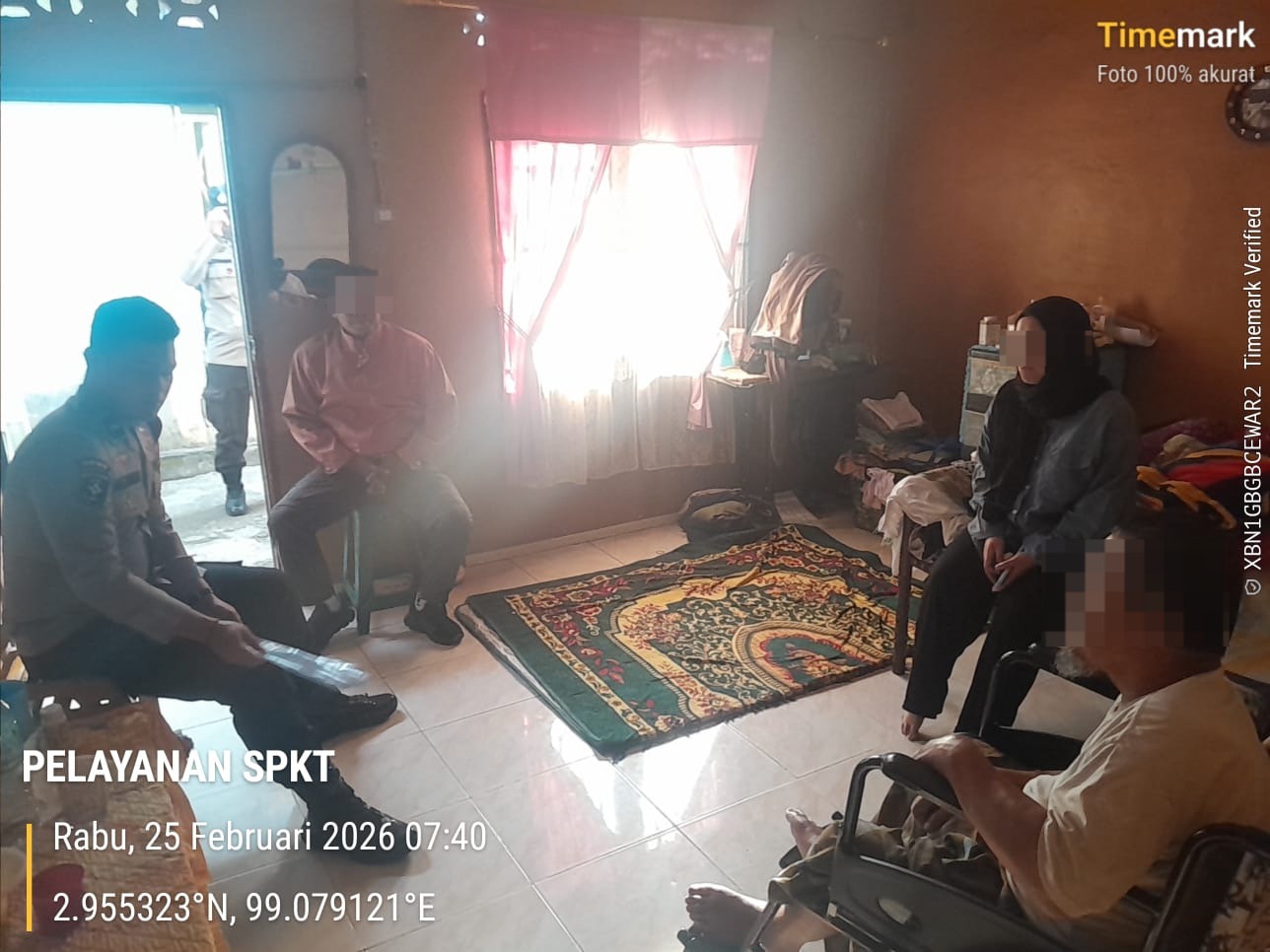 Setiba di TKP, para personil menemui pelapor HN yang menyampaikan mengalami pemukulan dan pengancaman menggunakan sebilah parang serta martil yang dilakukan anak pelapor. Tetapi saat itu anak pelapor sudah pergi dan anak pelapor tersebut juga menderita Gangguan Jiwa. Lalu para personil mengarahkan pelapor membuat Laporan Polisi ke Mako Polsek Siantar Timur untuk di tindak lanjuti.