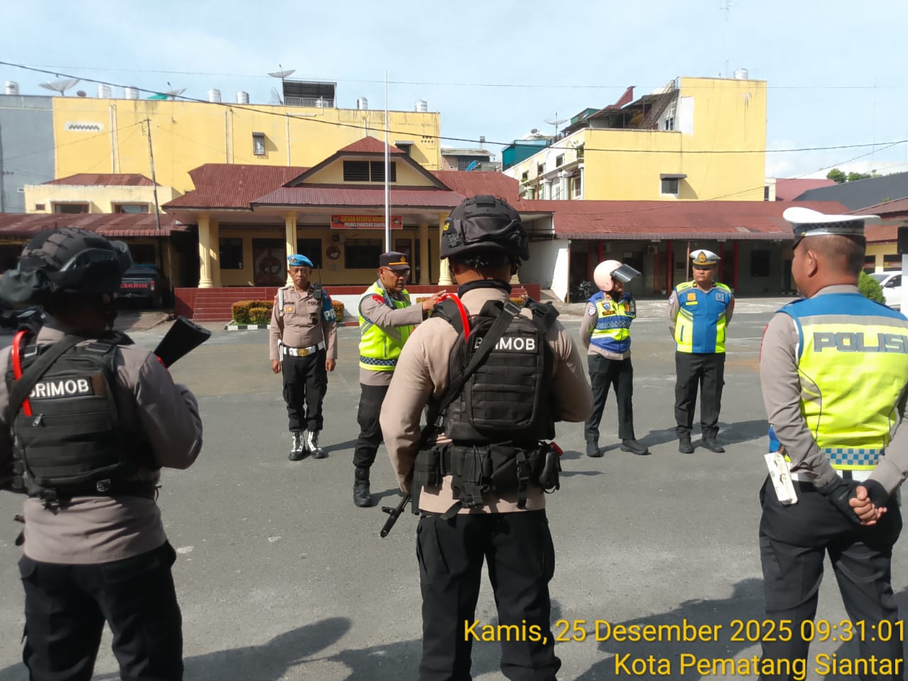Liputanmetrosumut.com || Pematang Siantar – Polres Pematangsiantar menggelar patroli Skala Besar pengecekan ibadah Perayaan Natal Tahun 2025 di Gereja yang ada di wilayah hukum Polres Pematangsiantar, Kamis 25 Desember 2025 pagi pukul : 09.00 Wib.