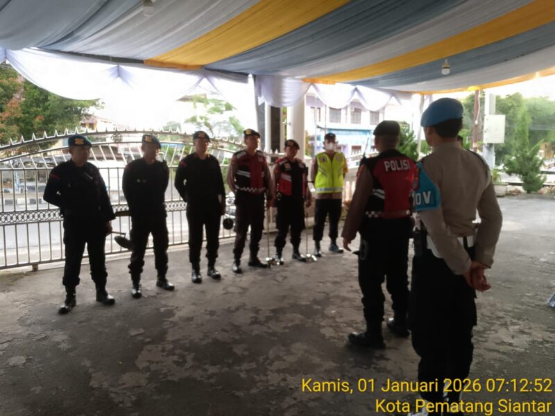 Liputanmetrosumut.com || Pematang Siantar – Dalam rangka memberikan rasa aman dan nyaman kepada masyarakat yang melaksanakan ibadah perayaan Tahun Baru 2026, Polres Pematangsiantar melaksanakan kegiatan apel pengecekan personel serta sterilisasi tempat ibadah (gereja), Kamis pagi (01/01/2026).