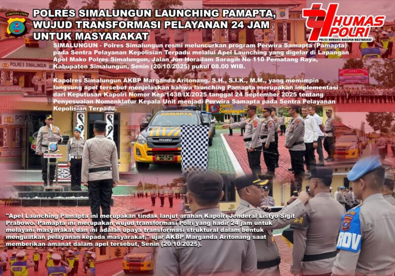 Liputanmetrosumut.com || Simalungun – Polres Simalungun resmi meluncurkan program Perwira Samapta (Pamapta) pada Sentra Pelayanan Kepolisian Terpadu melalui Apel Launching yang digelar di Lapangan Apel Mako Polres Simalungun, Jalan Jon Horailam Saragih No 110 Pematang Raya, Kabupaten Simalungun, Senin (20/10/2025) pukul 08.00 WIB.