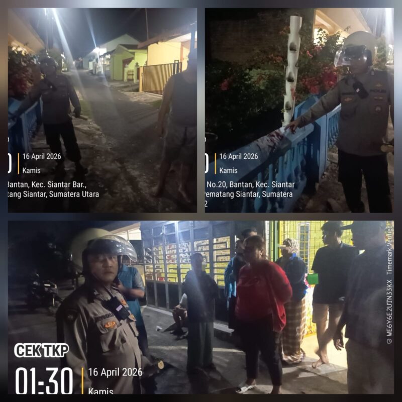 Liputanmetrosumut.com || Pematang Siantar – Respon cepat laporan Call Center 110, Polres Pematangsiantar melalui personil piket Polsek Siantar Barat dipimpin Piket Pawas Kanit Samapta IPDA Irwan Saragih SH melakukan pengecekan TKP adanya keributan di Jalan Seram Bawah Gang Ganevo Kelurahan Bantan Kecamatan Siantar Barat Kota Pematangsiantar, pada Kamis 16 April 2026 dini hari sekira pukul : 01.30 Wib.