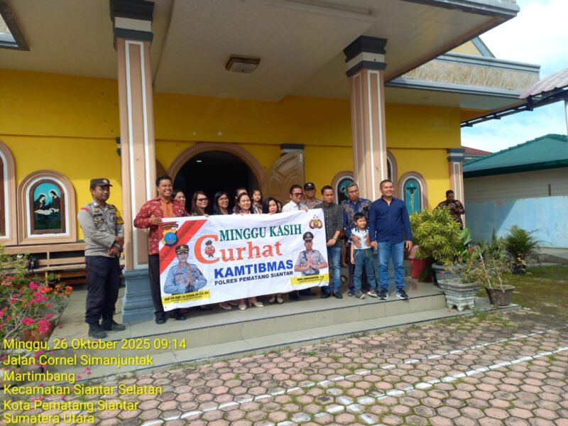 Liputanmetrosumut.com || Pematang Siantar – Polsek Siantar Marihat Polres Pematangsiantar melalui Piket Bhabinkamtibmas menggelar kegiatan Minggu Kasih Curhat Kamtibmas di Gereja HKBP Jalan Cornel Simanjuntak, Kelurahan Naga Huta Timur Kecamatan Siantar Marimbun Kota Pematangsiantar.