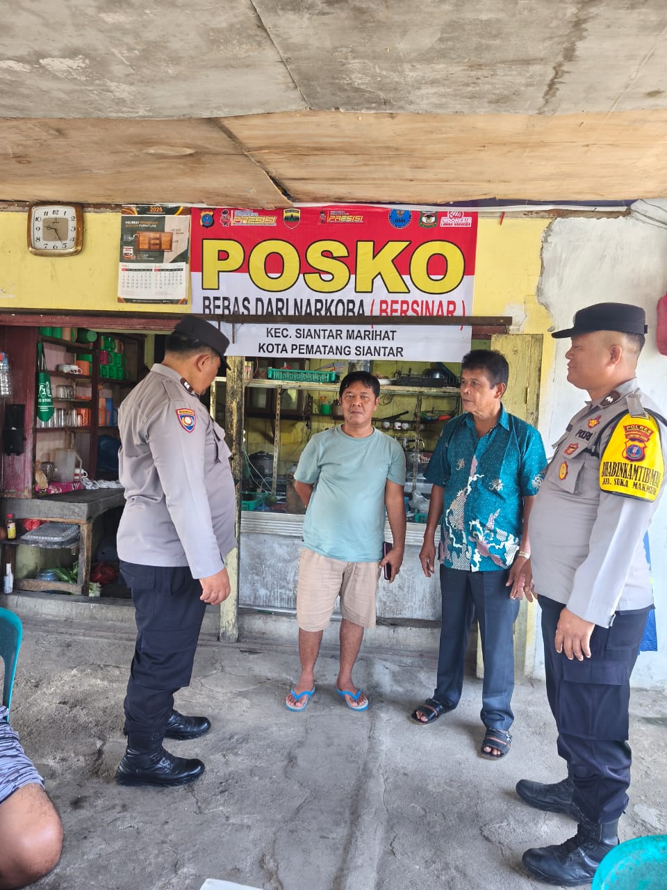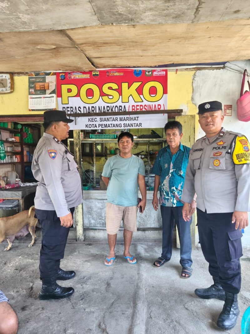 Liputanmetrosumut.com || Pematang Siantar – Polsek Siantar Marihat Polres Pematangsiantar melalui piket Bhabinkamtibmas Aiptu Poltak Sinambela, Aipda Adilman Manalu dan Aipda ijon saragih melaksanakan patroli Posko Bebas dari Narkoba (Bersinar) di Jalan Pisang, Kelurahan Pardamean, Kecamatan Siantar Marihat Kota Pematangsiantar, pada Minggu 10 Agustus 2025 pagi sekira pukul 09.00 Wib.