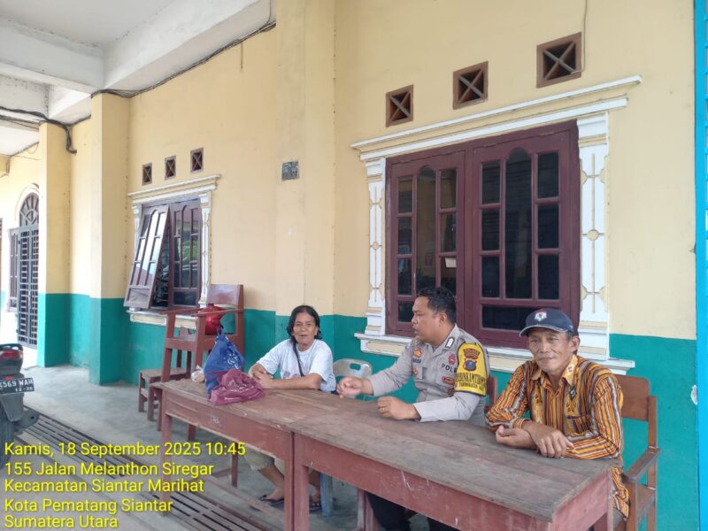 Liputanmetrosumut.com || Pematang Siantar – Polsek Siantar Marihat Polres Pematangsiantar melalui Bhabinkamtibmas Kelurahan Parhorasan Nauli melaksanakan sambang kepada masyarakat Jalan Melanthon Siregar, Kelurahan Parhorasan Nauli, Kecamatan Siantar Marihat, Kota Pematangsiantar, pada Kamis 18 September 2025 pagi pukul : 10.30 Wib.