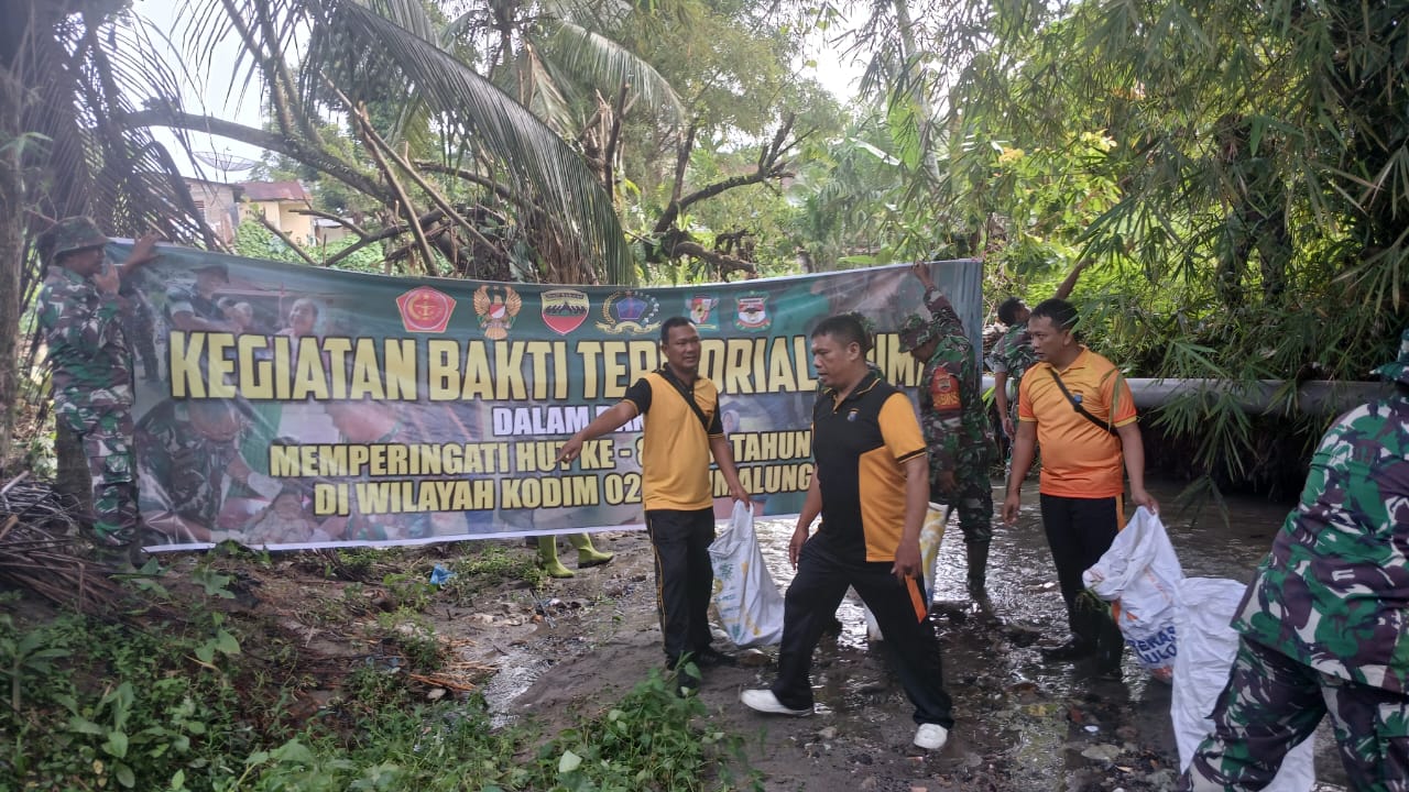 Liputanmetrosumut.com || Pematang Siantar – Polsek Siantar Martoba, Polres Pematangsiantar melalui perwakilan lima personil mengikuti kegiatan Karya Bakti dalam rangka HUT TNI ke 80 yang berlangsung di Sungai Pancur Lima Pasar Pagi Kelurahan Setia Negara, Kecamatan Siantar Sitalasari Kota Pematangsiantar, pada Senin 15 September 2025 pagi sekira pukul 09.00 Wib.