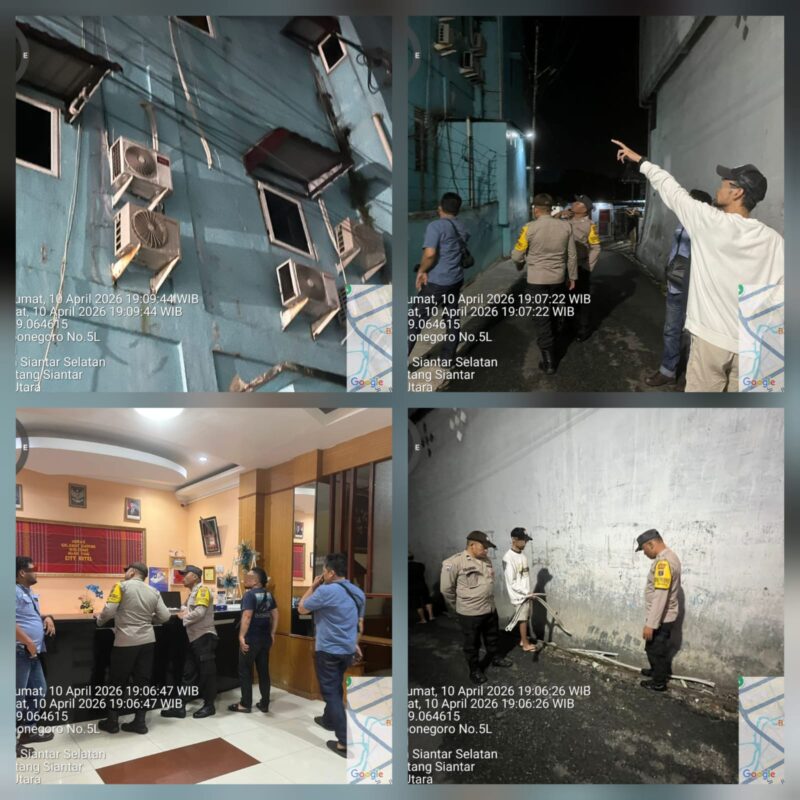 Liputanmetrosumut.com   ||  Pematang Siantar –         Polres Pematangsiantar melalui Polsek Siantar Selatan respon cepat melakukan pengecekan TKP laporan pencurian Outdoor AC Hotel Jalan Diponegoro Kelurahan Karo Kecamatan Siantar Selatan Kota Pematangsiantar, pada Jumat 10 April 2026 malam sekira pukul 18.41 Wib.