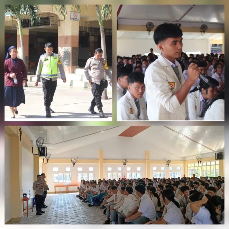 Kapolsek Siantar Selatan IPTU Priston Simbolon menyampaikan sosialisasi tersebut diikuti Kepala Sekolah, para guru dan siswa siswi SMA Swasta RK Bintang Timur.