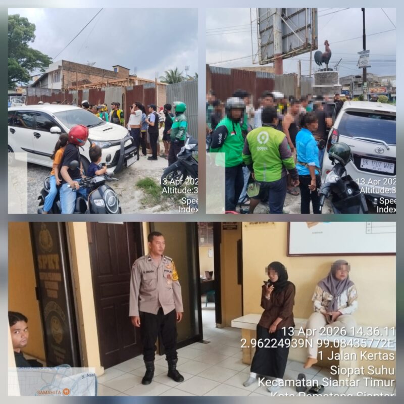 Liputanmetrosumut.com || Pematang Siantar – Polres Pematangsiantar melalui personil piket Polsek Siantar Timur respon cepat Call Center 110 dengan melakukan pengecekan adanya keribuatan di Jalan Ahmad Yani Kelurahan Asuhan Kecamatan Siantar Timur Kota Pematangsiantar, pada Senin (13/4/2026) siang sekira pukul 13.50 Wib.