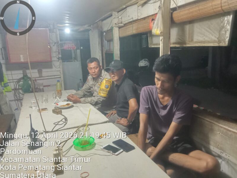 Liputanmetrosumut.com   ||  Pematang Siantar –       Polsek Siantar Timur Polres Pematangsiantar melalui personil Piket Bhabinkamtibmas Aipda Hardi Silalahi dan Aipda Manoa Sitanggang melaksanakan kegiatan SALING (Sapa Siskamling) di Poskamling Jalan Senangin Keluarhan Pardomuan Kecamatan Siantar Timur Kota Pematangsiantar, pada Minggu 12 April 2026 malam sekira pukul : 21.15 WIB.