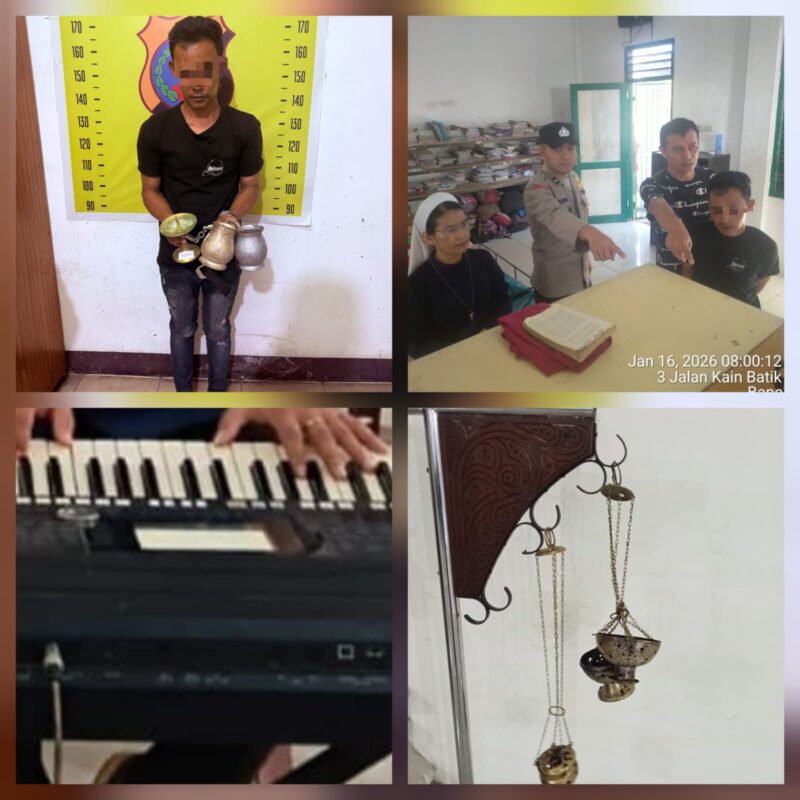 Kemudian Kanit Reskrim menginterogasi pelaku MCK yang mengaku melakukan pencurian di Gereja St. Joseph tersebut pada hari Jumat (16/1/2026) pagi sekira pukul 06.00 Wib dengan temannya inisial B (DPO) kemudian berhasil mencuri barang barang berupa Sibori 2 buah, Wiruk 2 buah, lonceng 2 buah, Kanderal 4 buah, Hisop 1, keyboard merek yamaha PSR 950 1 buah dan Lavabo 2 buah.