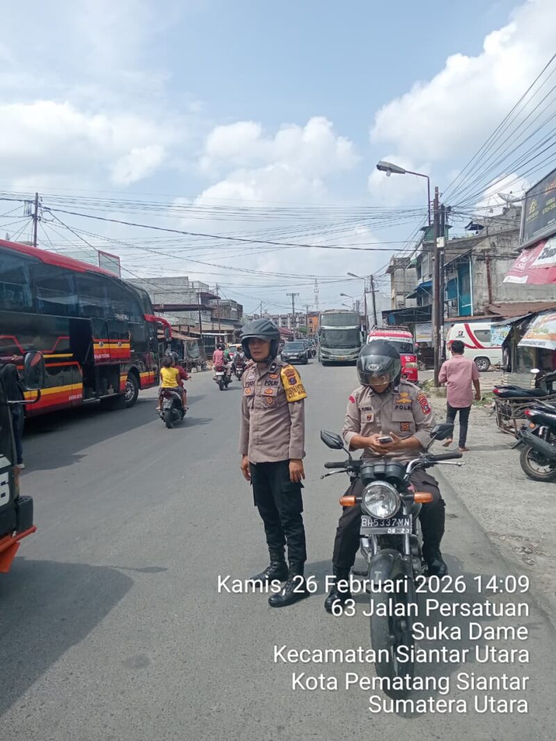 Liputanmetrosumut.com || Pematang Siantar – Polres Pematangsiantar melalui personil piket Polsek Siantar Utara respon cepat tindaklanjuti laporan Call Center 110 dengan melakukan pengaturan arus lalu lintas (Gatur Lalin) mengantisipasi kemacetan di Jalan Persatuan Kelurahan Sukadame Kecamatan Siantar Utara Kota Pematangsiantar, pada Kamis 26 Februari 2026 siang sekira pukul 13.45 Wib.